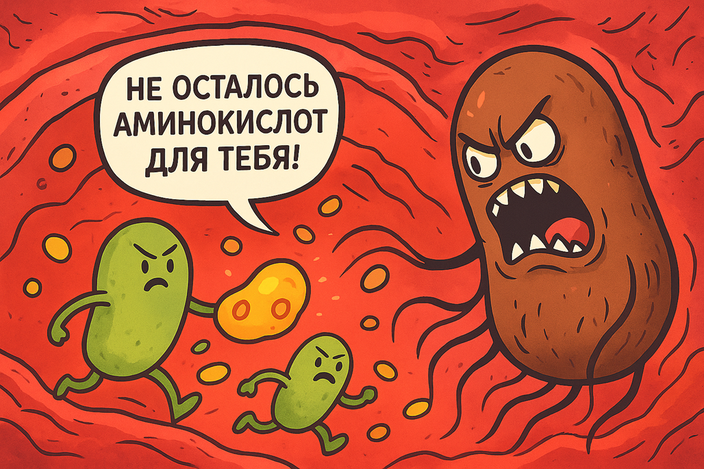 Мы построили биоинформатический конвейер, который по геномам предсказывает, какие микробы способны лишать C. difficile жизненно важных аминокислот и тем самым не позволять ей эффективно колонизировать кишечник. Этот подход открывает путь к выявлению наиболее перспективных микробных защитников — потенциальных пробиотических микроорганизмов.