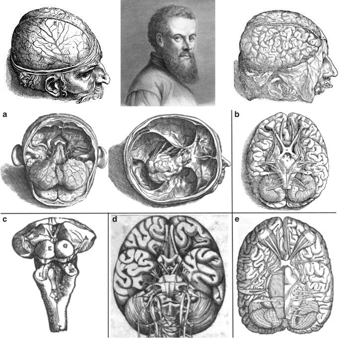 Фундамент представлений об анатомии человеческого мозга заложен римским врачом Галеном во II веке н.э. Тогда посмертное вскрытие человека было под запретом, поэтому Гален «подпольно» изучал случайные находки человеческих тел, либо мозг животных. Гален описал часть мозговых структур (например, мозжечок, желудочки мозга и черепно-мозговые нервы) [3], однако его внимание было сосредоточено не на мозговом веществе, а на мозговых желудочках. Отсутствие систематического доступа к человеческим мозгам привело к большому количеству «белых пятен» и ошибок.