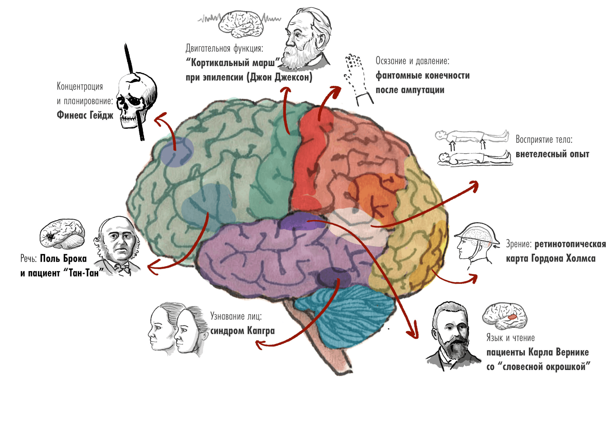 Увлекательные истории о пациентах с необычными симптомами при поражении различных отделов головного мозга можно найти в книге индийского невролога В. Рамачандрана «Мозг рассказывает». Ну а классика подобного чтения — «Человек, который принял жену за шляпу» Оливера Сакса.