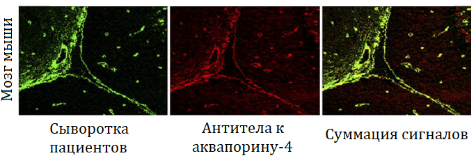 - Lennon V. A., Kryzer T. J., Pittock S. J., Verkman A. S., Hinson S. R. IgG marker of optic-spinal multiple sclerosis binds to the aquaporin-4 water channel // Journal of Experimental Medicine. 2005. Vol. 202, no. 4. P. 473–477. DOI: 10.1084/jem.20050304.;