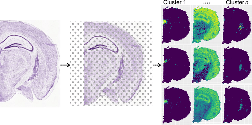 Сегодня гистологический срез можно превратить из статичной картинки в большую базу данных с помощью методов пространственной транскриптомики. Специальные приборы для РНК-секвенирования позволяют определить, какие гены активны в каждой конкретной клетке на срезе, сохранив ее пространственные координаты. Так исследователи получают новую информацию о патогенезе нервных болезней.