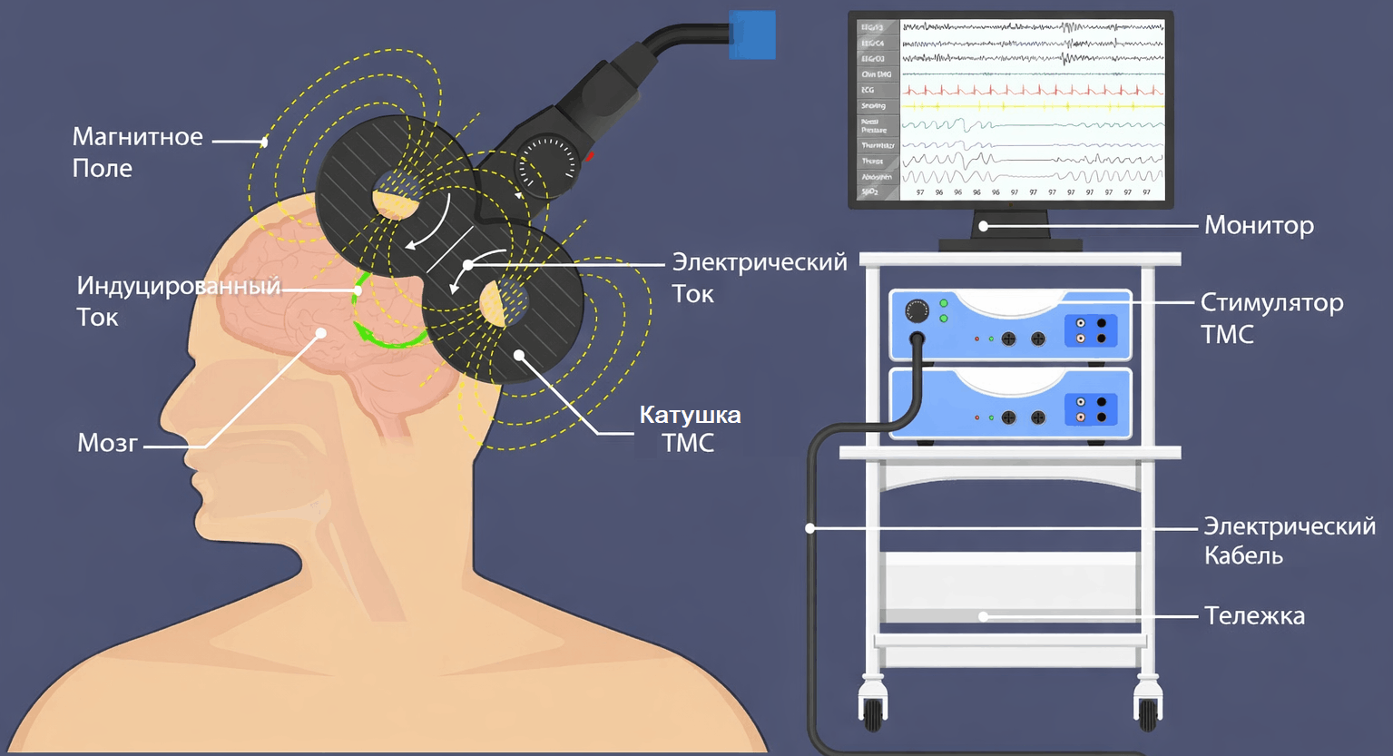 - Бакулин И. С., Пойдашева А. Г., Лагода Д. Ю., Супонева А. А., Пирадов М. А. Перспективы развития терапевтической транскраниальной магнитной стимуляции // Нервные болезни. 2021. № 4. URL: https://cyberleninka.ru/article/n/perspektivy-razvitiya-terapevticheskoy-transkranialnoy-magnitnoy-stimulyatsii (дата обращения: 06.03.2026).;
