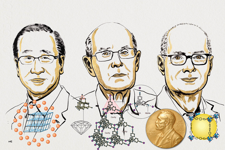 Шведская королевская академия наук решила присудить Нобелевскую премию по химии 2025 года Сусуму Китагаве, Ричарду Робсону и Омару Яги за разработку металлоорганических каркасов (metal—organic frameworks, MOFs).